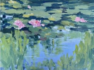 Eileen paints landscapes “en plein air” during Spring, Summer, and Fall, and in her studio when weather shifts, often enlarging works inspired by outdoor studies.